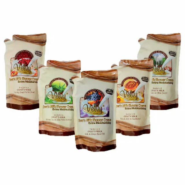 Velvy Goats Milk Shower Cream 800MLUntuk kamuu yang suka dengan perawatan kulit khususnya, kamu tidak perlu pergi ke spa atau ke tempat yang akan mempercantik kulit kamu, kamu sekarang dapat merawat kulit kamu dengan cantik dan lembabnya dirumah. Dengan menggunakan Velvy Goats Milk Shower Cream yang akan memperlembab kulit cantik kamu.Velvy Goats Milk Shower Cream adalah sebuah cream yang dapat kamu pakai seluruh tubuh dan akan memberikan tubuh kamu lembut, sehat dan lembab sepanjang harinya, kamu tidak perlu menggunakan body lotion lainnya untuk kulit kamu menjadi lembab, karena cream ini dapat melembabkan seluruh tubuh kamu tanpa ada rasa kering pada kulit kamu.Velvy Goats Milk Shower Cream tersedia varian:- green tea and aloevera- licorice and shea butter- rosehip seed oil and peach- royal jelly and sunflower- silk and grapeseed oil- Velvy Goat's Milk Silk & Grape Seed Oil Ultra LighteningDikombinasikan dengan Ekstrak Mulberry dan Minyak Biji Anggur yang dapat membantu mencerahkan kult, sebagai antioksidan untuk melindungi kulit dari ancaman radikal bebas.- Velvy Goat's Milk Green Tea & aloe Vera AntioxidantDengan Vitamin essensial alami serta ekstrak Teh Hijau & Lidah Buaya, dapat membantu membersihkan, memelihara dan memberikan kelembaban kulit lebih tahan lama.- Velvy Goat's Milk Rosehip Seed Oil & Peach Soothing & Firming Nutrisi tinggi yang terkandung dalam Rosehip Seed Oil, membantu mengencangkan kulit dikombinasikandengan Ekstrak Peach yang memberikan kelembaban pada kulit.- Velvy Goat's Milk Licorice & Shea Butter Smooth & LighteningDiformulasikan secara khusus dengan kandungan Susu Kambing terbaik yang kaya akan vitamin A, B dan Protein yang sangat dibutuhkan oleh kulit. Ekstrak Licorice memberikan kesegaran dan membantu mencerahkan kulit anda. Dikombinasikan dengan Shea Butter yang memberikan kontribusi tinggi untuk kelembaban kulit.- Velvy Goat's Milk Royal Jelly & Sunflower Nourishes & MoisturisesDiformulasikan secara khusus dengan memberikan kandungan Susu Kambing terbaik yang kaya akan Vitamin A, B dan Protein yang sangat dibutuhkan oleh kulit. Royal Jelly yang kaya akan antioksidan. Dikombinasikan dengan ekstrak bunga matahari yang dapat memberikan kelembaban secara maksimal.Variant yang dapat dipilih sesuai dengan selera kamu yang akan membuat kulit kamu segar sepanjang har