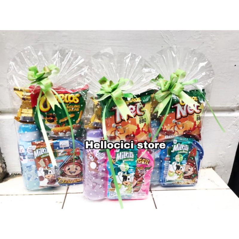 Ready parcel + snacknya real picture kami kirim random stok tersedia1 pcs lunch box 1 pcs botol minum 350 ml 1 pcs chiki pitatos / chitos / taro 1 pcs chiki komo / magnum 1 pcs permen milkita 1 pcs mie shoor 1 pcs momogi 1 pcs plastik kemasan 1 pcs pita tarik cantik Dikirim dalam keadaan kemasan yya silahkan dio