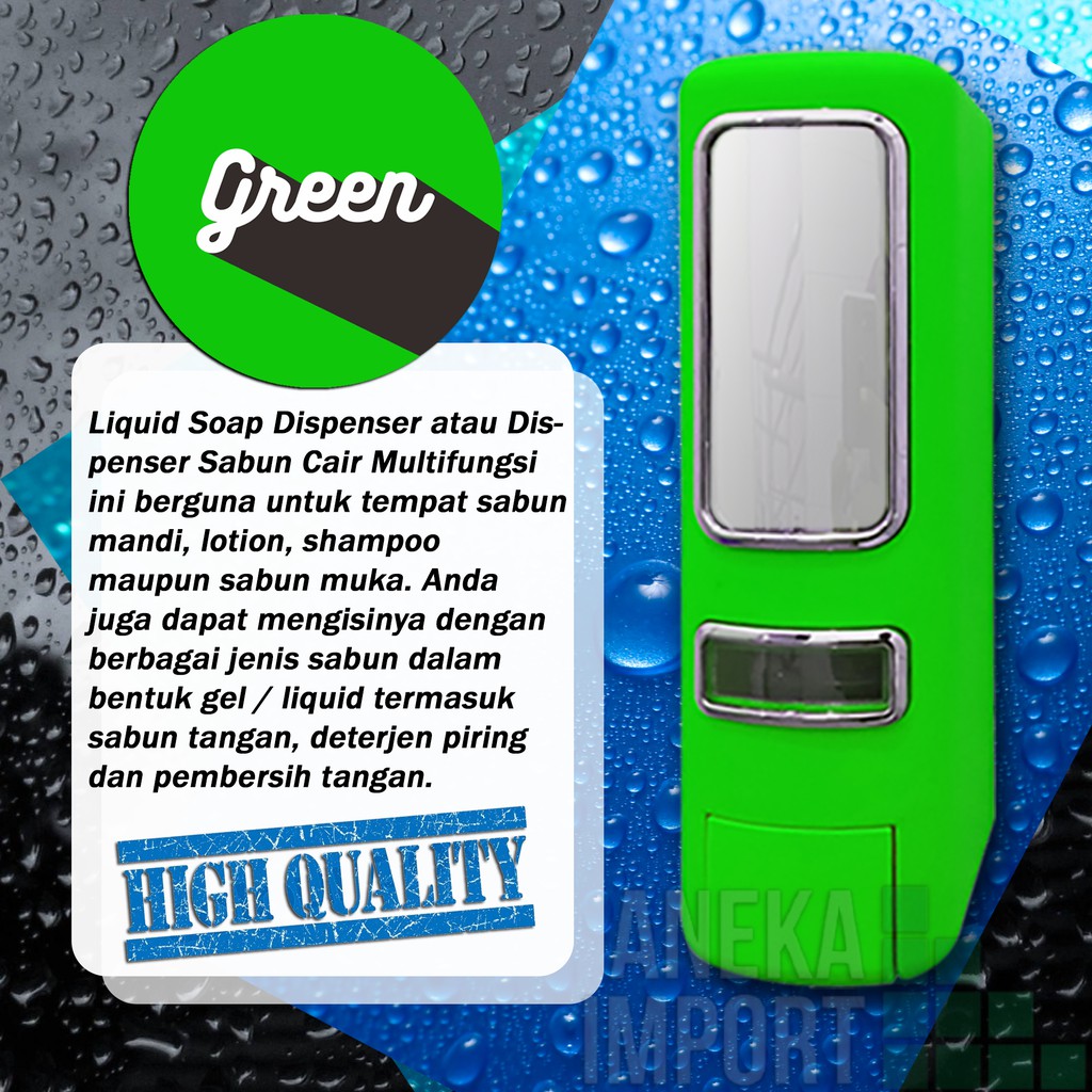 Tempat sabun New ModelLiquid Soap Dispenser atau Dispenser Sabun Cair Multifungsi ini berguna untuk tempat sabun mandi, lotion, shampoo maupun sabun muka. Anda juga dapat mengisinya dengan berbagai jenis sabun dalam bentuk gel / liquid termasuk sabun tangan, deterjen piring dan pembersih tangan. Dengan desain yang unik dan hemat tempat sehingga membuat kamar mandi anda menjadi terlihat lebih rapi, elegan dan moderen. Anda juga dapat menjadikannya untuk mempercantik dekorasi kamar mandi anda. Sangat cocok untuk rumah pribadi, rumah sakit, hotel, rumah makan, salon, kantor dll. Selain itu, Dispenser sabun cair multifungsi ini memiliki kunci yang dapat mengunci sabun supaya tidak dapat digunakan orang yang tidak berkepentingan. Cara pemasangan mudah dan praktis, sudah tersedia Kunci dan Paku Bor yang kuat, anda cukup membuat lubang untuk mengantung dispenser.Keunggulan Produk:Menggunakan Sistem Per Lebih Awet dan tahan lamaMudah saat menggunakan tidak perlu dengan tenagaBahan dari plastik ABS berkualitas yang kuat dan kokoh sehingga lebih awet dan tahan lama.Pengisian mudah dan praktis.Desain unik, elegan dan hemat tempat.warna lebih bervarian dan eleganBisa dikunci supaya tidak dapat digunakan orang yang tidak berkepentingan.Mempercantik dekorasi kamar mandi anda sehingga terlihat lebih rapih dan elegan seperti hotel berbintang.Cara Pasang dan penggunaan :Buat lubang pada dinding untuk menggantung dispenser (Paku sudah disediakan).Untuk mengisi ulang sabun, anda cukup membuka pada bagian atas dispenser lalu isikan sabun.Untuk menggunakan anda hanya perlu memencet tombol.Untuk mengunci sabun cukup dengan mencolokan kunci pada lobang kunci yang ada pada bagian atas dispenser lalu tekan.MOHON MAAF, SEBELUM KIRIM KITA PASTIKAN CEK KONDISI BARANG DALAM KEADAAN BAIK, JADI TIDAK BISA RETUR/KOMPLAIN BARANG RUSAK/PECAH/RETAK. MEMBELI BERARTI SETUJU DENGAN PERATURAN INI. KERUSAKAN DALAM PENGIRIMAN BUKAN TANGGUNG JAWAB KITA. KEMASAN SUDAH MENDAPATKAN KARDUS DAN BUBBLE WRAP.SAAT PENERIMAAN PAKET HARAP CEK KONDISI BARANG DIDEPAN KURIR LANGSUNG SEBELUM TANDA TANGAN PENERIMAAN BARANG.TERIMAKASIH ATAS PERHATIAN DAN KERJASAM