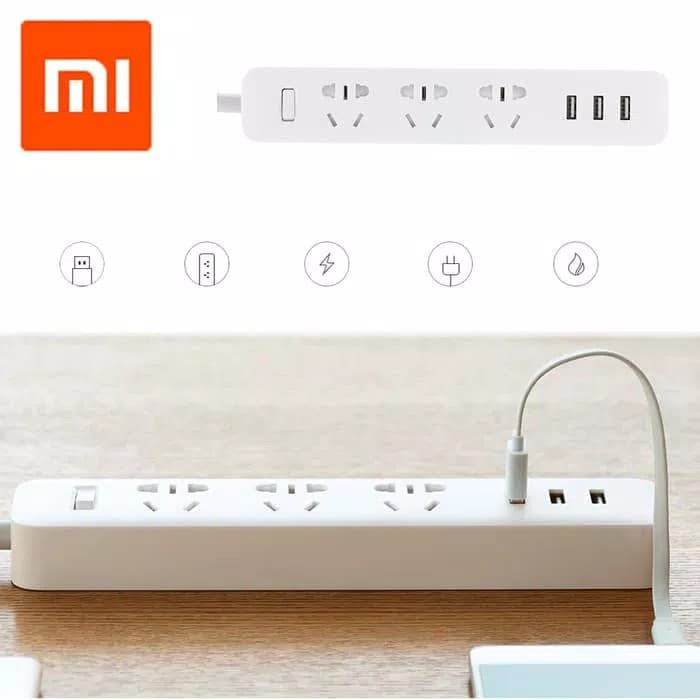 Xiaomi Smart Power Strip Plug Adapter with 3 USB Port 2A (ujung colokan kaki 3, perhatikan gambar)Butuh tambahan adapter bisa order di link ini : warna ready : HITAM. PUTIH KOSONGSpesifikasi :Dimension Product Length : full-length 1.8mSize : 22.5cm x 4.1cm x 2.6cmOthers Overload protection : 10ARated input : 10A,250VRated output : 10A,250VRated power : 2500WUSB module input : 100-240V, 50/60Hz,0.5AUSB module output : single USB,5V---2.1A(TYP)Three USB, 5V 3.1A (TYP)Use of the environment temperature : -10C - 40CFlame retardant : 750 CSafety resistance : 75NSupport 2A fast charger 3 USB Charging PortsYour versatile and original charger, auto power distribution by smart chips, support mobile, tablets, etc. Electrical Security On The Basis Of Quality MateialsQuality phospor bronze, integrated copper strip processing for enhanced safety.Trouble Free UseBlackout timely when overloading, prevent fire from short circuit. Joemex, a company with 20 years circuit breaker designing experience. barang tersedia boss , langsung dipesan , akan segera kami p