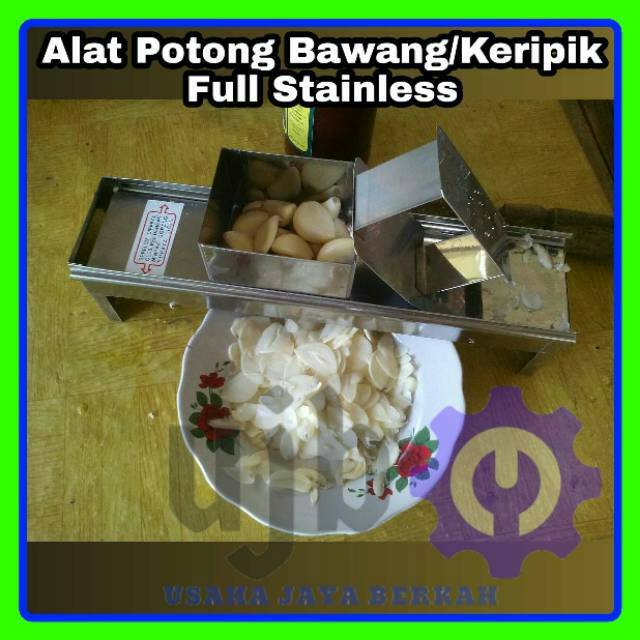 PASAH / PEMOTONG BAWANG/ PEMOTONG KERIPIK / PARUTAN KERIPIK MULTI GUNA STAINLESS TAHAN KARAT AWET Kualitas Original AsliA. SPESIFIKASI:- Bahan : Stainless steell anti karat- Berat : 450gram- Berat Packing : 500gram- Ukuran : Panjang 31cm x Lebar 7cm x Tinggi 7,5cm- Didesain agar mudah di bawa, aman dan awetB. KEGUNAAN :Untuk memasah / mengiris :- Brambang / Bawang merah , Bawang putih- Pisang buat keripik- Kentang- Ketela- Ubi- Gadung- Sukun- Talas- Gembili- Ganyong- Uwi- Wortel- Timun- Cabe- Dan lain-lain sejenisnyaC. KELEBIHAN PASAH MULTI GUNA1. Alat ringan untuk dibawa.2. Multi guna, berbagai macam pemotong termasuk bawang merah / putih, kentang, ketela , pisang, cabe, wortel, gadung, ubi, sukun, buah, bahkan ada yang digunakan untuk membuat keripik tempe .3. Kerja sangat cepat dan menyingkat waktu4. Aman digunakan.5. Hasil potongan sama tebal.6. Pisau bisa di tajamkan lagi. jika tumpul cukup di perlas dengan perlas besi yang lembut searah dan perlas mudah didapatkan ditoko" bangunan.7.Ramah Lingkungan, aman digunakan, awet dan anti karatINTRUKSI PENGGUNAAN:Setel ukuran tebal / tipisnya hasil potongan sesuai yang diinginkan dengan baut pengikat dengan merubah (naik turun) landasan dengan cara mengendorkan baut lantas dikuatkan lagi.Olesi sedikit minyak goreng di bagian relnya agar lancar dalam memasah.Masukkan kotak ke dalam rel, lalu masukkan bahan yang akan di pasah ke dalam kotak, tekan lalu geserkan ke arah pisau, maka hasil irisan akan keluar dari bawah.Lihat Youtube https://youtu.be/YJ9VbQachO0Menerima pemesanan seluruh indonesia, Hongkong dan lain sebagainya#Pasahbawang#Alatpotongbawang#Pasahkeripik#Pemotongbawang#Pemotongkeripik#pemotongbawang#pemotongsayuran#pemotongkentang#pemotongpisang #pemotongserbaguna#parutanserbaguna#parutankeripik#parutanmultifungsi #parutanbawang #alatirisbawang#pengirisbawang#hargagrosir#irisanb