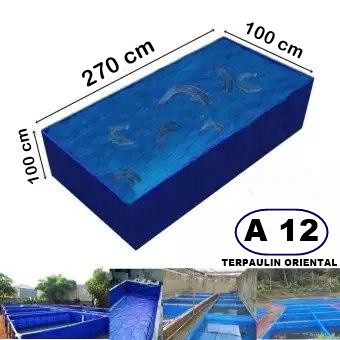 Kolam Terpal Kotak Persegi Ukuran Dimensi 270 cm x 100 cm x 100 cmKolam Terpal Persegi================Kolam terpal adalah sebuah inovasi media budidaya ikan terbaru yang kini sedang ramai dibicarakan dan diaplikasikan oleh para pemiliki budidaya ikan tawar di Indonesia. Kolam terpal digunakan untuk pengaplikasian sistem budidaya biofloc pada berbagai macam ikan tawar. ====================Spesifikasi Kolam Terpal PersegiPanjang : 270 cmLebar : 100 cmTinggi : 100 cmBahan : Terpaulin HDPE (merk : ORIENTAL) A12Kelengkapan: Terpal , Ring mata ayamhappy sho