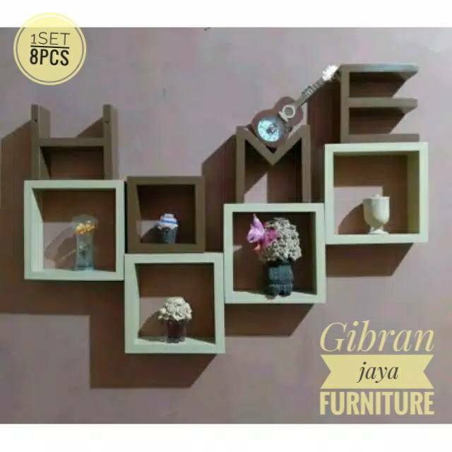 Rak dinding full set sesuai gambarDeskripsi produc:*Rak Dinding HomeTulisan HOME 18 x 18 x 6cmRak kotak 22 x 22 x 6 cm Produk terbuat dari kayu albasia BUKAN dari multiplek(triplek). Sehingga produk lebih kokoh tahan kelembapan dan pastinya lebih awetFhinising memakai CAT DUCO, sehingga warna tidak gampang pudarTersedia warna merah,putih,hitam dll. Bisa request warna yang di inginkan untuk menyesuaikan ruangan andaBisa costum nama Kelengkapan:*Braket paku sehingga anda tidak perlu membelinya*lengkap dengan panduan pemasangan dari kamiPemasangan mudah jika tidak ada bor bisa pakai