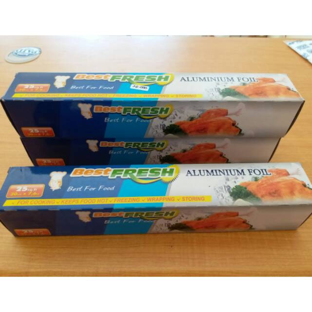 Alumunium Foil 30x7,6 Best Fresh Aluminium foil biasa digunakan untuk menyimpan makanan yang akan dipanaskan kembali di lain waktu / digunakan untuk menjaga dan menyimpan makanan sisa.Aluminium foil sangat baik digunakan jika Anda akan menyimpan makanan yang baunya tak sedap, aluminium foil akan menciptakan penghalang yang cukup kuat untuk mencegah bau makanan tadi bertebaran ke seluruh penjuru lemari pendingin Anda. Pastikan Anda menutupnya dengan sempurna dan seerat mungkin.Aluminium foil juga ideal digunakan ketika Anda akan menghangatkan kembali makanan tersebut dengan oven konvensional, karena aluminium foil bisa tahan panas.Tips penggunaan: Saat Anda akan menyimpan makanan yang sudah terbungkus plastik, coba gunakan selapis aluminium foil untuk membungkus kembali bagian luarnya. Melakukan hal ini akan memastikan tidak ada oksigen yang masuk ke makanan yang dibungkus itu. Pastikan Anda tidak menggunakan aluminium foil dalam microwave karena bisa menimbulkan percikan api. Jangan gunakan aluminium foil untuk menyimpan makanan asam, seperti tomat dan buah berry. Asam pada makanan tersebut akan bereaksi dengan aluminium dan meninggalkan residu berwarna biru yang tipis.#alumuniumfoil #alumunium #plastik #bungkusmak