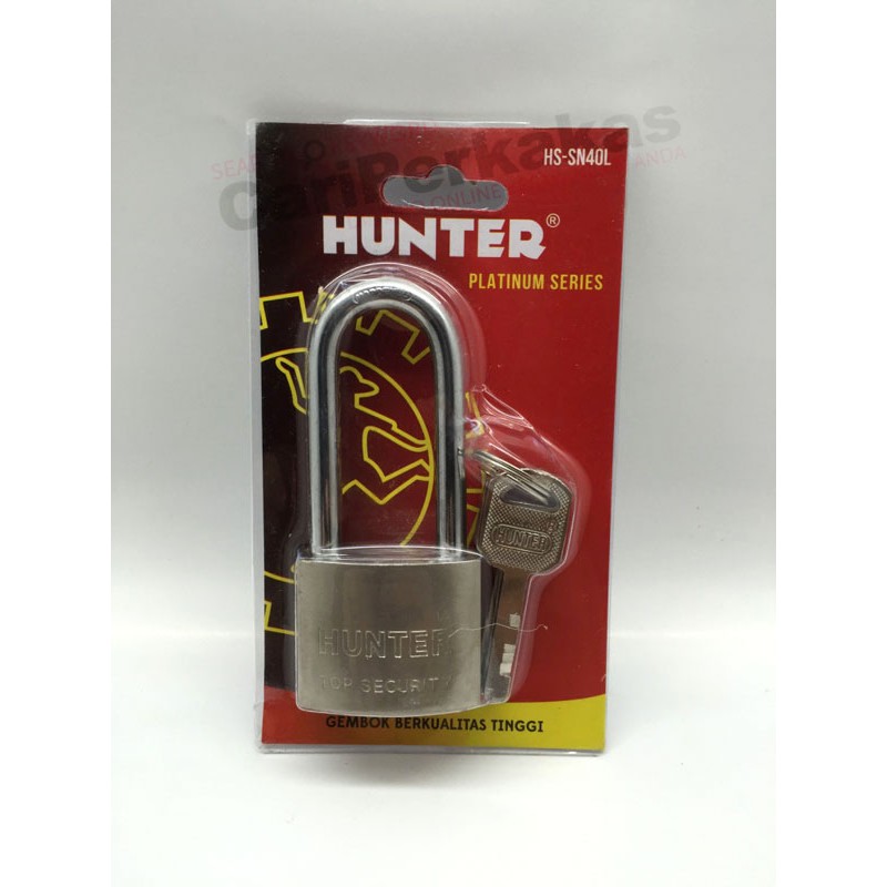 Gembok besi chrome HUNTER ukuran 40 mm leher panjang. Anak kunci da