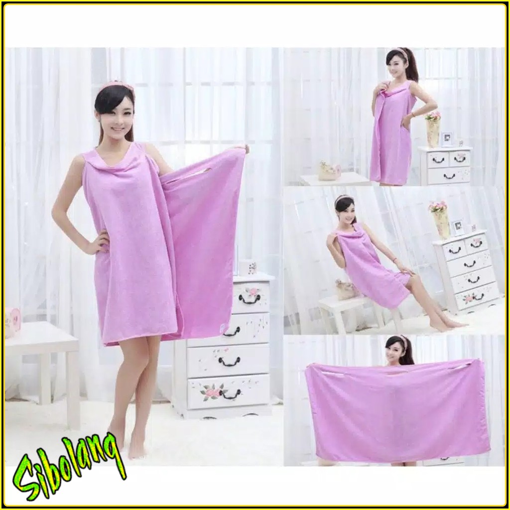 Produk sesuai pitc ya sis.. Malu dong diliatin orang???Dengan baju handuk kimono ini, anda tidak perlu malu lagi saat keluar kamar mandi. Baju handuk jika dipakai seperti memakai dress. Selain berfungsi untuk mengeringkan badan sehabis mandi, juga cocok dipakai sehabis berenang atau saat berjemur di pantai.Berbeda dengan keluaran sebelumnya, model baru ini lebih trendy, dan bahan juga jauh lebih tebal dan halus, nyaman di kulit, bahan nyerap air.Spesifikasi :- Polyester - ultra-fine fibers- Panjang 70cm - 80cm- lebar 120cm - 130cm- bahan halus- Memiliki kancing di bagian kiri dan kanan atas, agar tidak terbuka.Ready Warna :- Pink- Biru- Cream- UnguSetiap produk sebelum kirim selalu di cek toko kami Sibolang, jika ada kerusakan , robek dll, diluar tanggung jawab kita.utk kesediaan warna silahkan cantumkan waktu pemesanan ya sis. Apabila kosong kami kirim yg redy stok.Silahkan Diorder ya s