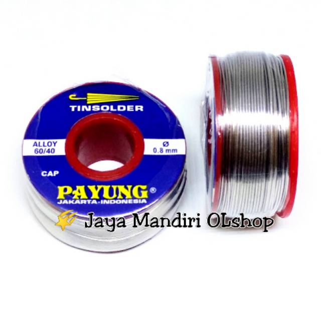 Timah Solder PayungGrade 60/40, Diameter 0,8 mm,Berat 250 grHarga diatas adalah harga per pcs / 1