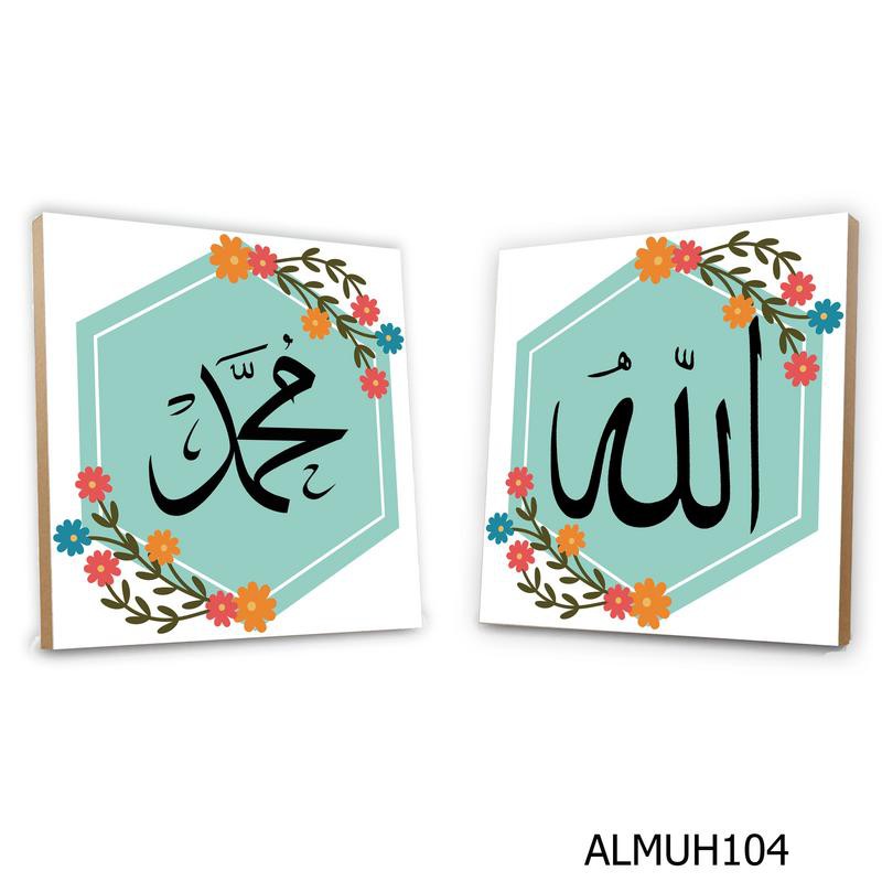 Name: Hiasan Dinding Kaligrafi Poster Kayu 1 Set Lafaz Allah Muhammad Quotes Vintage Wall Decor 20x20cm